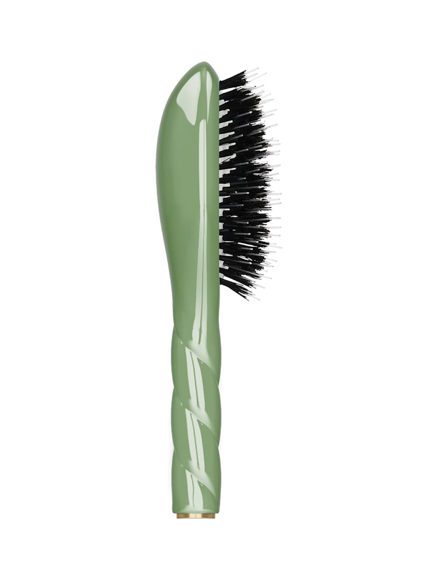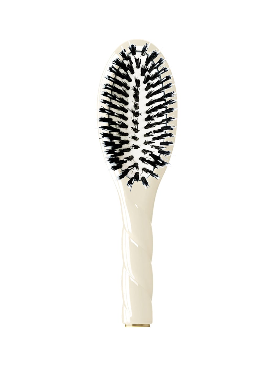 Rich in keratin, the hair brush’s boar bristles deeply moisturize the hair fiber from the tips to the roots. By enveloping the hair cuticles, they strengthen and protect them against external aggressions, leaving them even more shiny. The nylon fibers of this nylon and boar bristle hair brush make it easy to brush your hair, whether it’s fine or thick. Neither too soft nor too stiff, the flexibility of the nylon bristles has been carefully designed to work through all hair types. Whether you have normal, thick, straight or soft hair, the Essential is the nylon and boar bristle hair brush you need in your everyday routine. Used in the morning, it effectively detangles and styles your hair. At night, it thoroughly rids your hair of impurities, allowing your scalp to breathe. And the rest of the time? Small touch-ups are all you need! Morning or night, brush dry or wet hair in order to reap all the benefits of this nylon and boar bristle hair brush’s different fibers.