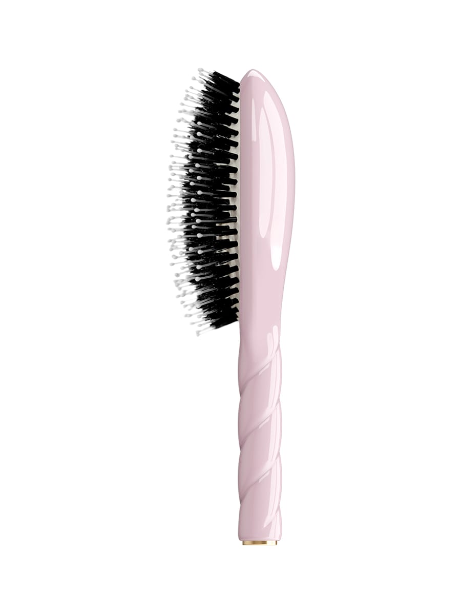 Combining natural boar and synthetic nylon fibers, the Essential Soft Hair Brush is the everyday hair brush for sensitive hair. The boar bristles naturally moisturize the entire length of your hair, leaving it with a brilliant shine. The keratin in the follicles of the boar bristles coats the hair cuticles and instantly revitalizes the locks, while the soft nylon fibers ensure gentle detangling. The ball-tipped nylon bristles of this hair brush gently massage the scalp: ideal for stimulating microcirculation without damaging it! Its gentle fibers make the Essential Soft the perfect hair brush for children! This boar bristle and nylon brush is suitable for all hair types. Whether your hair is straight or soft, using the Essential Soft Hair Brush in your morning routine will leave your hair impeccably detangled and styled. Using this nylon and boar bristle hair brush in your evening routine will deeply clean, detoxify and regenerate the hair, ridding it of all the impurities that have built up during the day.